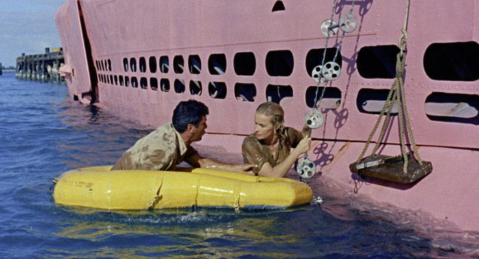 Lt. Watson (Robert Gist) is suddenly taken with a chuckle, when he sees the most unusual sight coming up on the dock. Lt. (JG) Nick Holden (Tony Curtis) has arrived, after being transferred to the Sea Tiger, on accident, of course. When Sherman sees this, he also gets a laugh, for Holden is an Admiral’s aide, dressed in full whites, on a very dirty dock. Holden explains that he has been assigned to the Sea Tiger simply due to miscommunication.